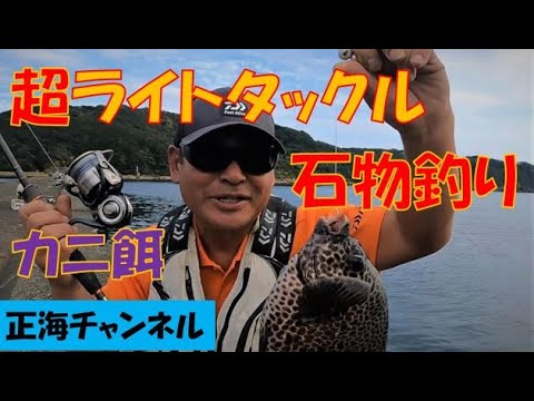 伊豆半島の堤防で、超ライトタックルとカニエサを使ってイシガキダイやブダイを狙う釣行動画。開始直後から反応が続き、堤防でも石物狙いが成立することを実感できる。